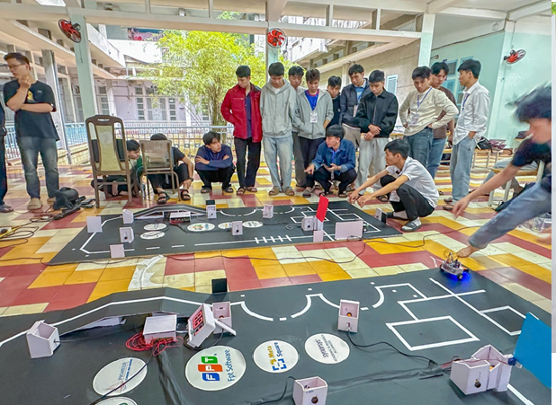 Lần này, chiến thắng không đến từ lực va chạm, mà đến từ cách robot tư duy, phản ứng và thích nghi trong từng centimet di chuyển. Mỗi cú đánh lái, mỗi vòng cua ngọt hay pha xử lý tình huống chính xác đều là kết quả của hàng giờ sinh viên viết code, debug, cân chỉnh cảm biến, tinh chỉnh PID, kiểm tra động cơ và kiểm thử, chỉnh sửa không biết bao nhiêu lần.